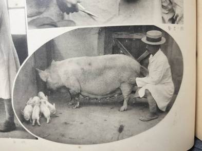 次に、実際の職業教育に関連する写真を見ていきたい。【写真5】では各生徒に担当が振り分けられた畑での野菜栽培の実習風景である。【写真6】でも温室内でのトマト栽培の実習が行われている。【写真7】から【写真8】にかけて豚の「飼育→屠殺→調理」に至る畜産の一連の流れを実習の中で学んでいる。【写真9】に分かるように、乳牛の飼育もおこなわれており、ここに掲載はしなかったが、他にも鶏やヤギなど様々な家畜の姿を確認できる。また【写真10】と【写真11】はそれぞれ製茶あるいはジャムの製造に関する実習の様子である。さらに【写真12】には実際に栽培した野菜・果物・畜産物やその加工品を市民に向けて販売する即売会の様子である。ここから、食品の栽培・加工・製造・販売に至る一連の流れを全て実習の中で完結させる実践的なカリキュラムが組まれていたことが分かる。