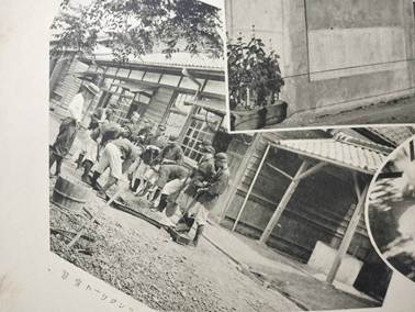 また、【写真13】には養蚕実習の様子が写っており、実際にカイコを育て、生糸生産の過程を実践に落とし込んでいる。農業恐慌の大きな要因の一つが生糸の対米輸出の停滞であり、逆に言えば、近代を通じ、コメと並んで日本の第一次産業の中核を成した分野がまさに生糸生産だったのである。農村経済の再建のために、養蚕技術に長けた指導者の登場が待たれていたことが写真から容易に想像できる。さらに注目すべきは、【写真14】に見える「コンクリート実習」の様子である。これは土木分野に関わる実習であり、農業インフラを整備する上で必要となる技術の習得のために実施されているものと理解できる。なお、窪田博はのちに官立三重高等農林学校農業土木学科に進学し、卒業後、一九三七(昭和十二)年に陸軍歩兵第三十八連隊に入営するまで富山県の耕地課に勤務し、農業インフラの整備や水利事業に携わっている(詳細は後述)。