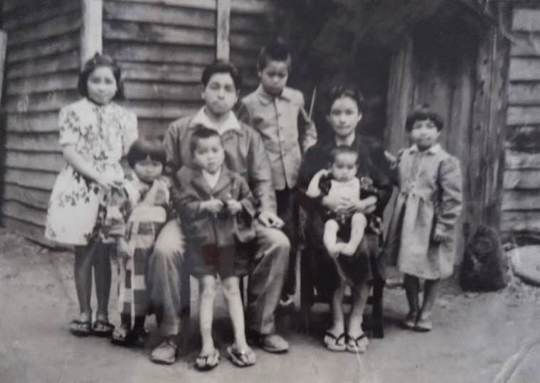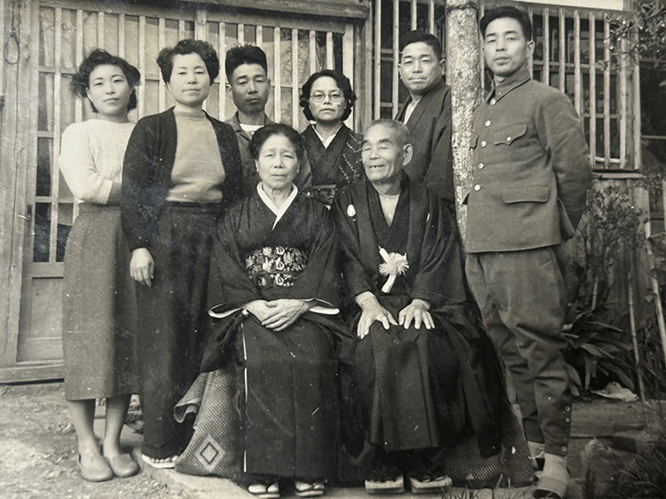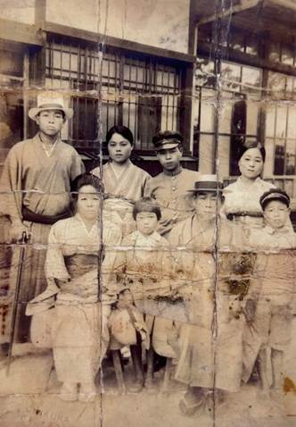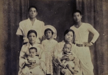 【写真1】1937年7月22日撮影。左列・忠幸、妻の秀子、長女英子、中央・妹の幸子・右列・弟の孝幸・妹トイコとその息子テルオ。