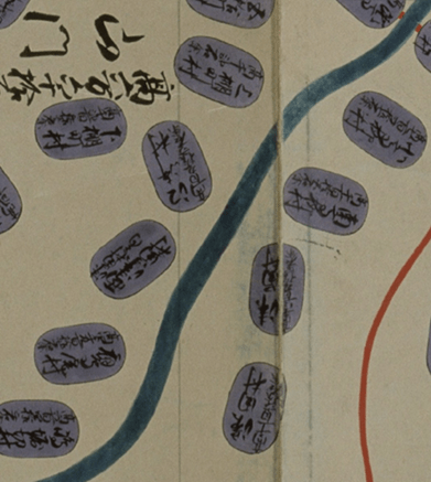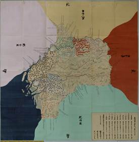 【図1】天保国絵図筑後国(1838年)。山門郡に目を向けると「津留村」と「西津留村」がある(右絵図。方位左絵図に準ずる)。