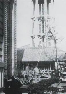 【写真6】1935年撮影。旧制・伝習館の防火訓練の様子。(福岡県立伝習館高校『創立百七十周年県立移管百周年記念誌』より抜粋)