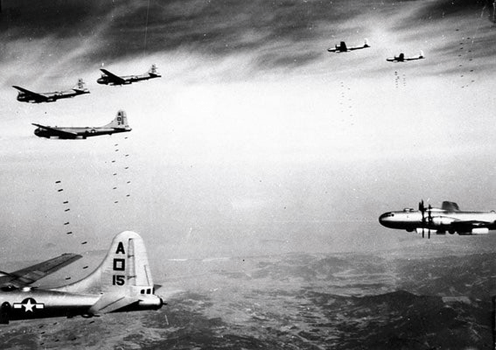 【写真3】大分・国東半島から侵入し、陸軍大刀洗飛行場に来襲するB-二九(大刀洗平和祈念館所蔵)